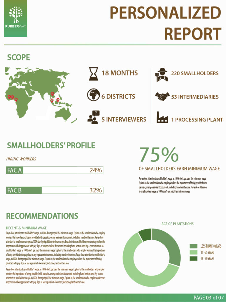 The data reported can be used by individual natural rubber processing factories, or downstream actors like tire makers and other end users to better understand risks within their supply chain.
