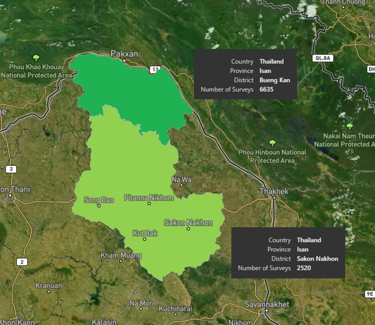 This gives stakeholders (rubber buyers, tire makers, natural rubber processors, car makers etc.) the information they need to locate and mitigate risks with locally targeted interventions.